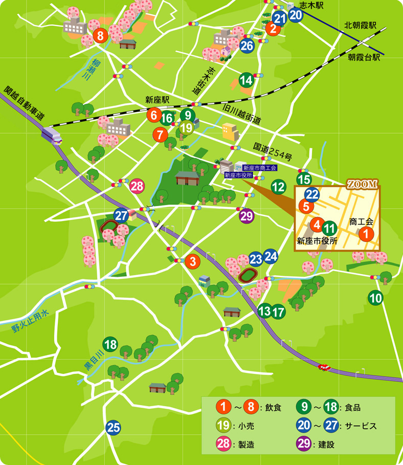 逸品マップ・番号をクリックしてお店の案内ページへ