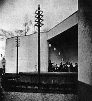野外音楽堂(左)(「分離派建築会の作品 第二」から),化学工業館(右)(当時の写真絵葉書)