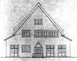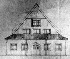 立面図(青焼き図面データをネガポジ反転加工)...(山本鼎記念館所蔵(掲載許諾済2007年5月))