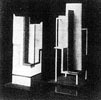 第6回分離派展の「形の習作」、第7回展の「宝来屋」模型、いずれもモダニズムの構成美 を追究する姿勢がみられる。 「宝来屋」は老舗の煮豆屋であった。 (2007年5月 記) |