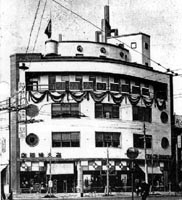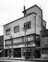 実作の少ない瀧澤眞弓であったが、唯一この宝来屋だけが近年まで現存していた。 1992年頃、私が現地を訪れた時は、既に建物は無く残念な思いをしたが、最近、ブロ グ「ぼくの近代建築コレクション」の流一氏がカメラに納め発表されていたので、当サ イトへの掲載もお願いし了承頂いた。上の2枚が1986〜87年頃の在りし日の建物の姿で ある。 分離派時代の模型から建物の終焉直前までを通して眺めてみると、若き日の瀧澤の造形 意思が、約60年間に渡ってほぼそのまま維持されていたことになる。 改修の跡は、3階のサッシュや向かって右脇の入口などごく一部であったようだ。 (2008年1月 記) |