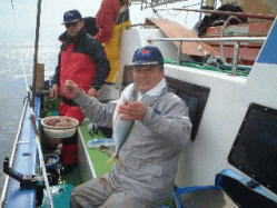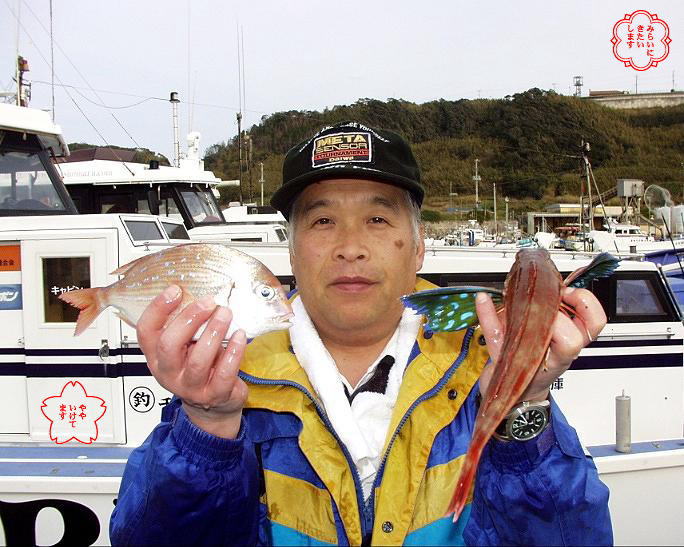 |  え〜本日はお日柄も良く・・・天気も良く・・・冬場特有の北西風が出てしまい残念・・・斬る〜っ!! 帽子が若くていいですね! 時計も若々しくて!帰りに船宿で頂いたカレーライスが旨かったーーー! うっ゛・・魚の評価が・・・うぐぐっ゛ |