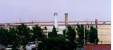 正面アプローチは、左右に階段を持つ(表現派好みの)凝ったデザインがな されているのだが遠景でしか望むことが出来ない為、見ることは出来ない。